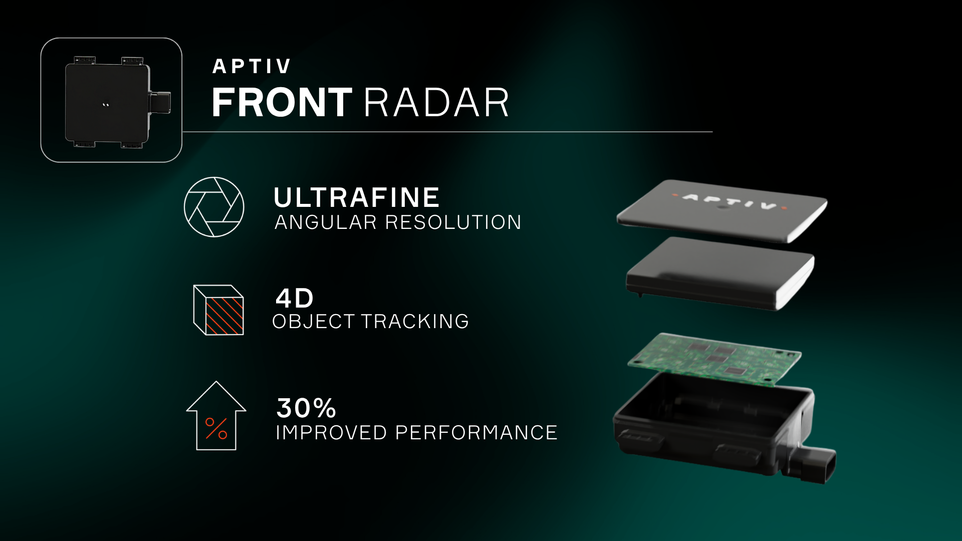 Backed by over 25 years in radar technology expertise, Aptiv’s Gen 8 radars combine proprietary software and hardware intellectual property (IP), introducing significant improvements in performance for a broader range of driving solutions across challenging weather and lighting conditions.